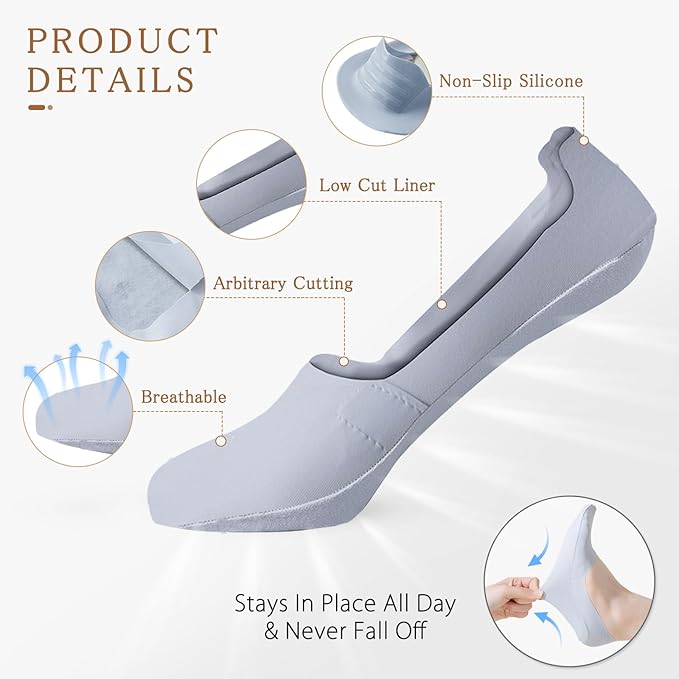 These ultra-low cut no-show socks are designed to remain completely hidden inside your shoes. Ideal for flats, pumps, ballerinas, Oxfords, loafers, slip-ons, heels, and sneakers. Enjoy the look of bare feet with the comfort of socks!🛡️ Non-Slip Security