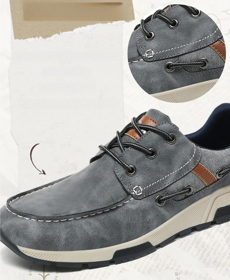 Crafted from full-grain leather with a subtle, washed-denim-inspired finish, these shoes offer a breathable, tailored fit. The cotton-padded lining keeps feet fresh, while the orthopaedic insole supports arches and relieves heel pain.
