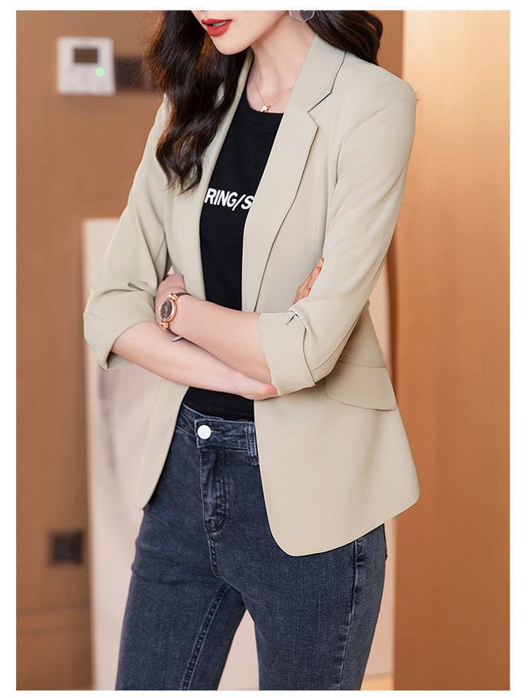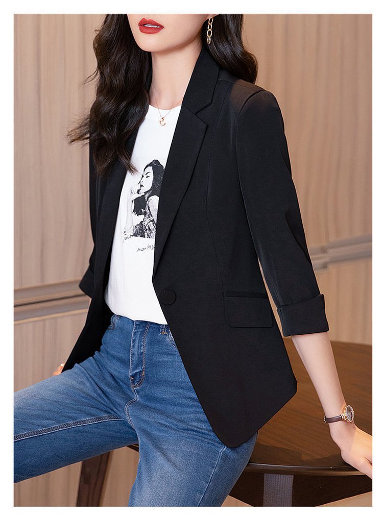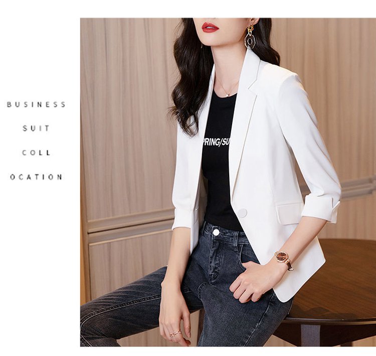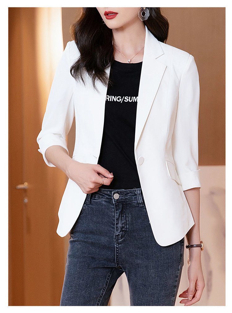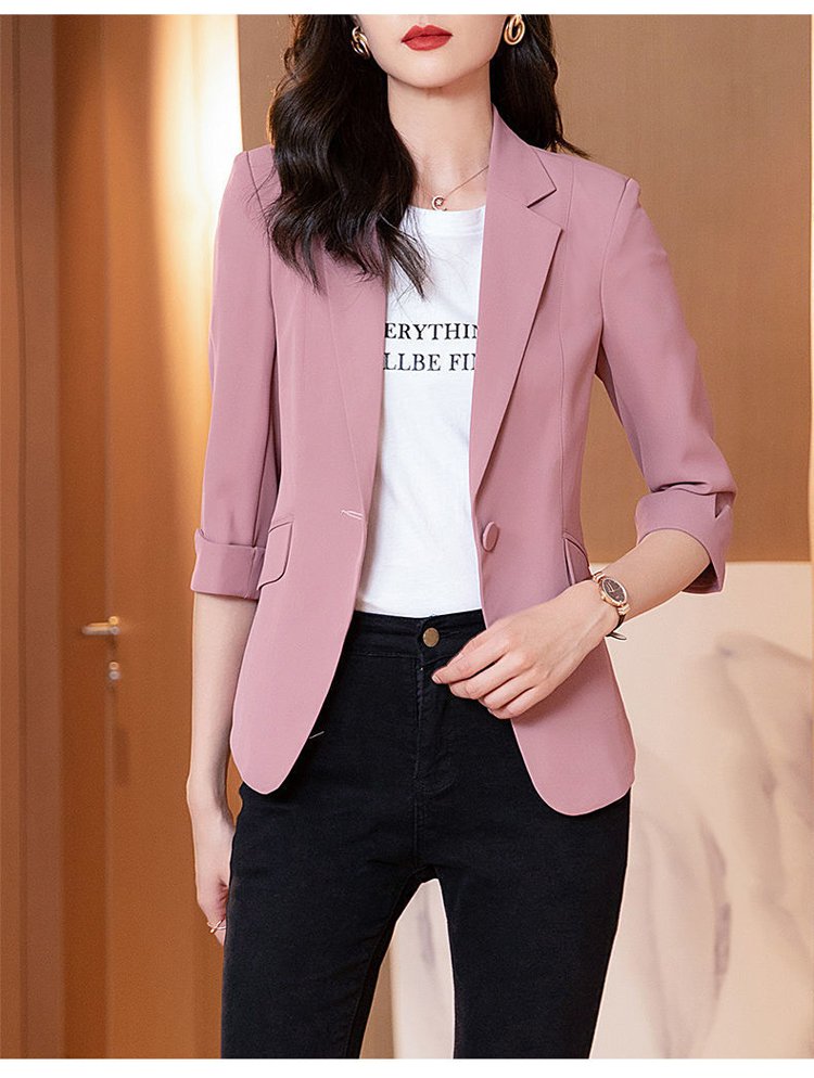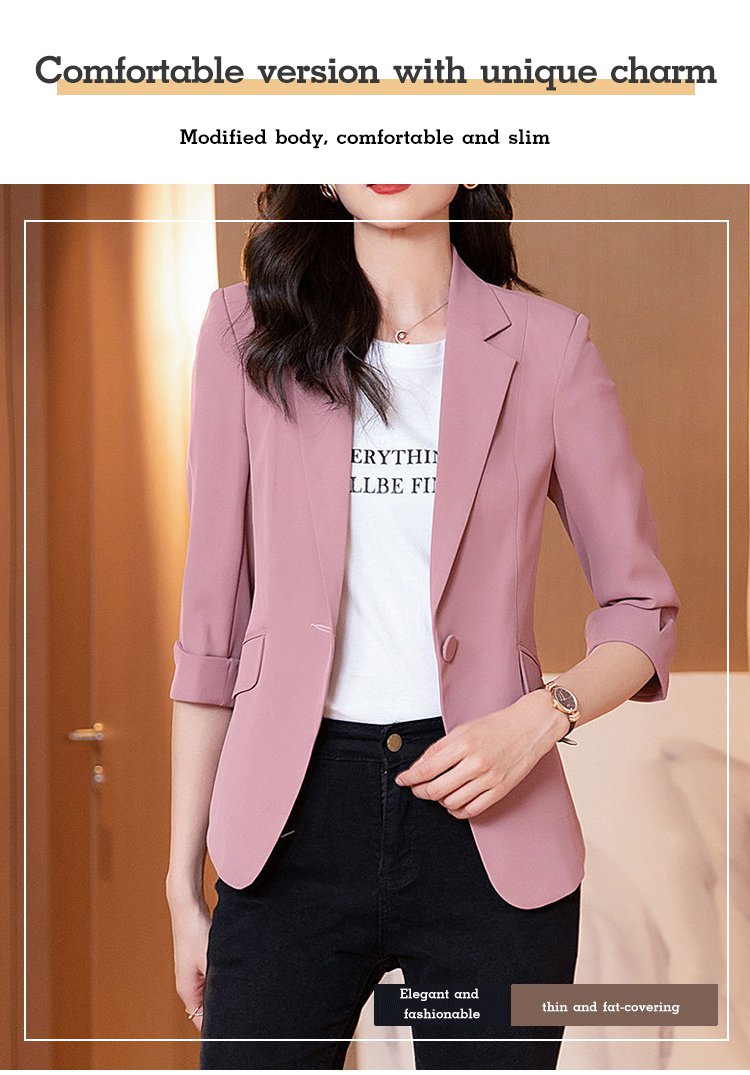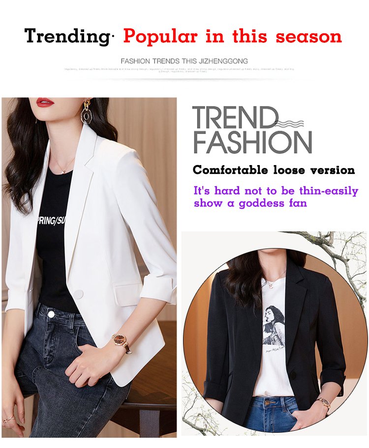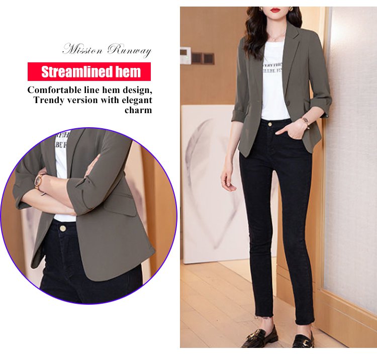 Elevate your wardrobe with our Slim-Fit Three-Quarter Sleeve Blazers. Designed for a sleek, tailored look, these blazers offer a modern silhouette with a flattering slim fit. The three-quarter sleeves add a touch of sophistication and versatility, making it perfect for layering over any outfit. Crafted from high-quality fabric, this blazer combines style and comfort, seamlessly transitioning from work to evening events. Upgrade your essentials with a chic, versatile piece that complements any ensemble !!