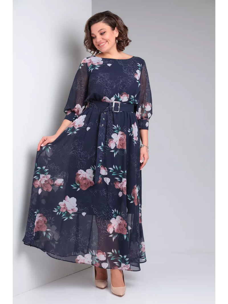 Blooming Elegance V-Neck Midi Dress with Lapel Detail