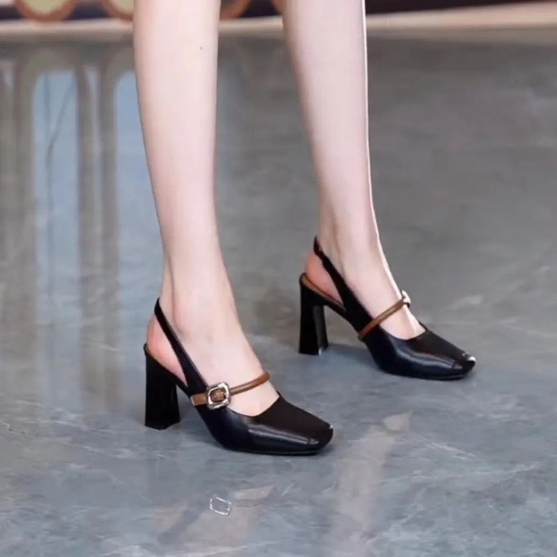 Modern Square-Toe Buckle Heels – Sleek Strap Design for Effortless Style