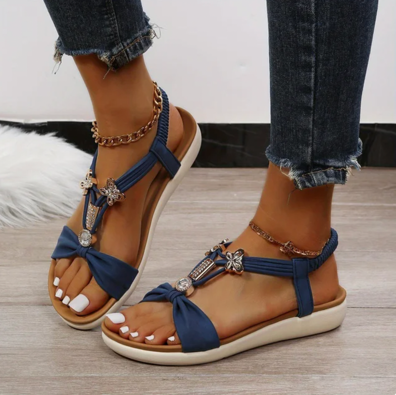 Rhinestone Floral Pattern Hollow Out Flip Flops Slippers