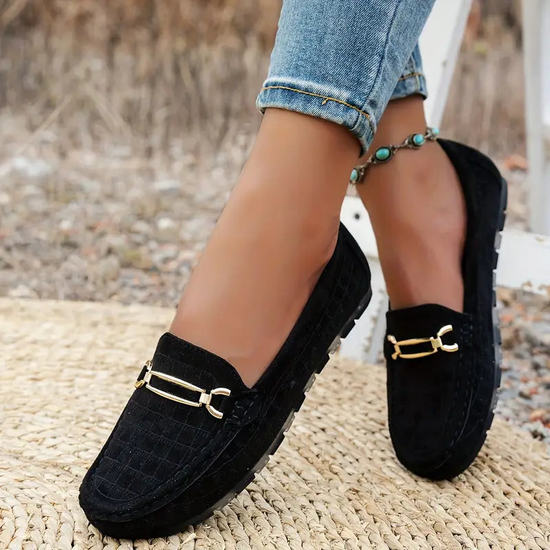 Women's Chunky Loafers – Retro Metal Button & Hand-Stitched