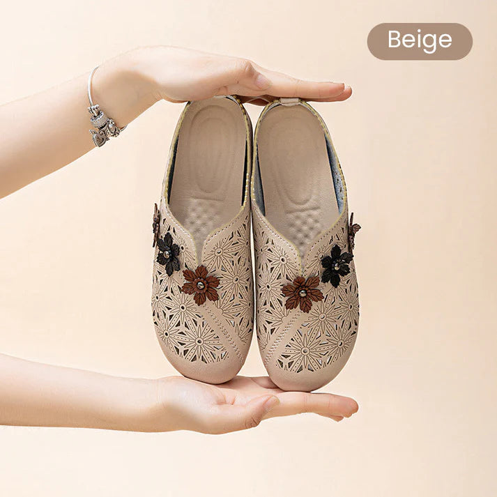 Women’s Vintage Perforated Leather Mules – Summer Slip-On Heeled Clogs