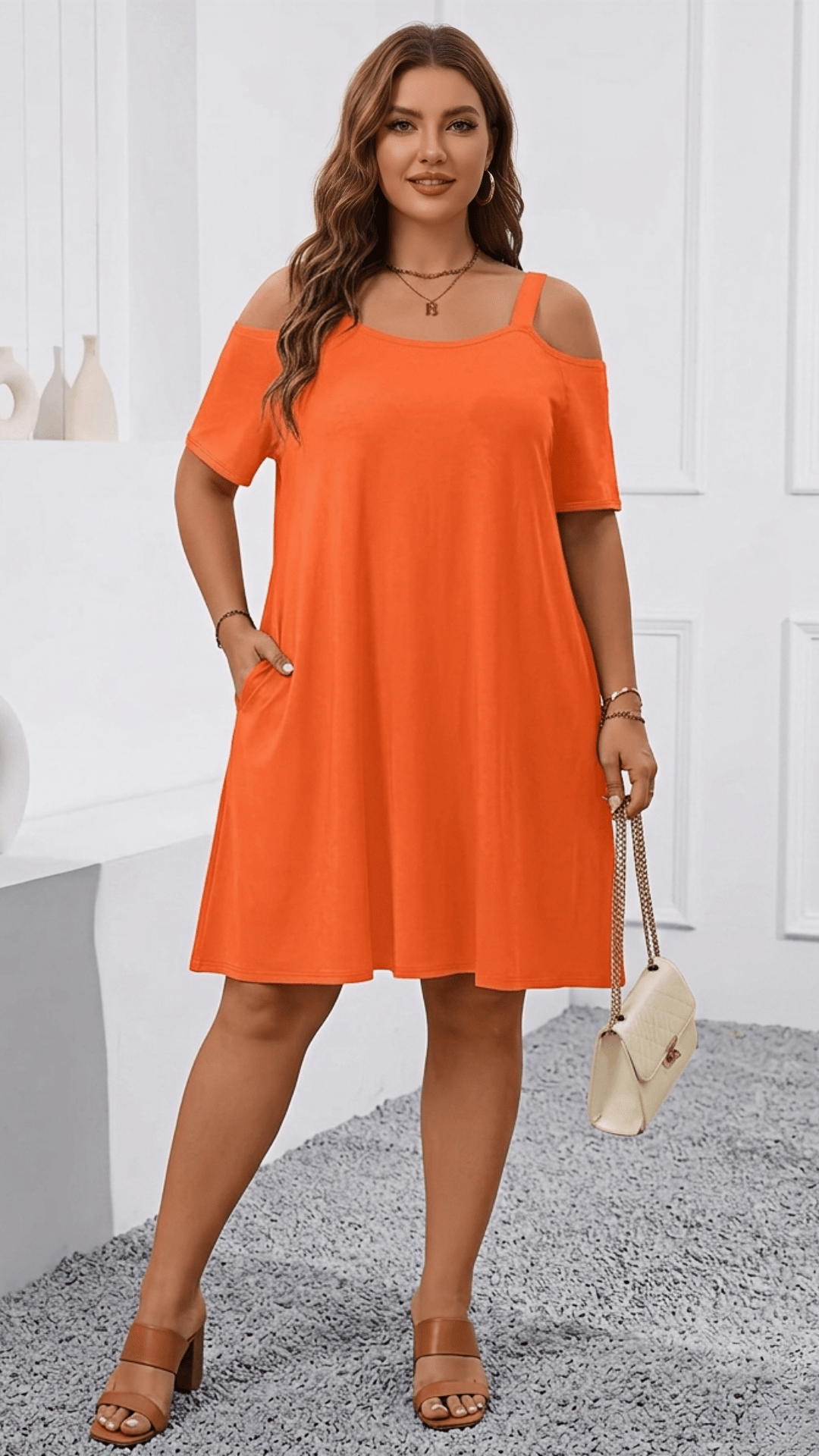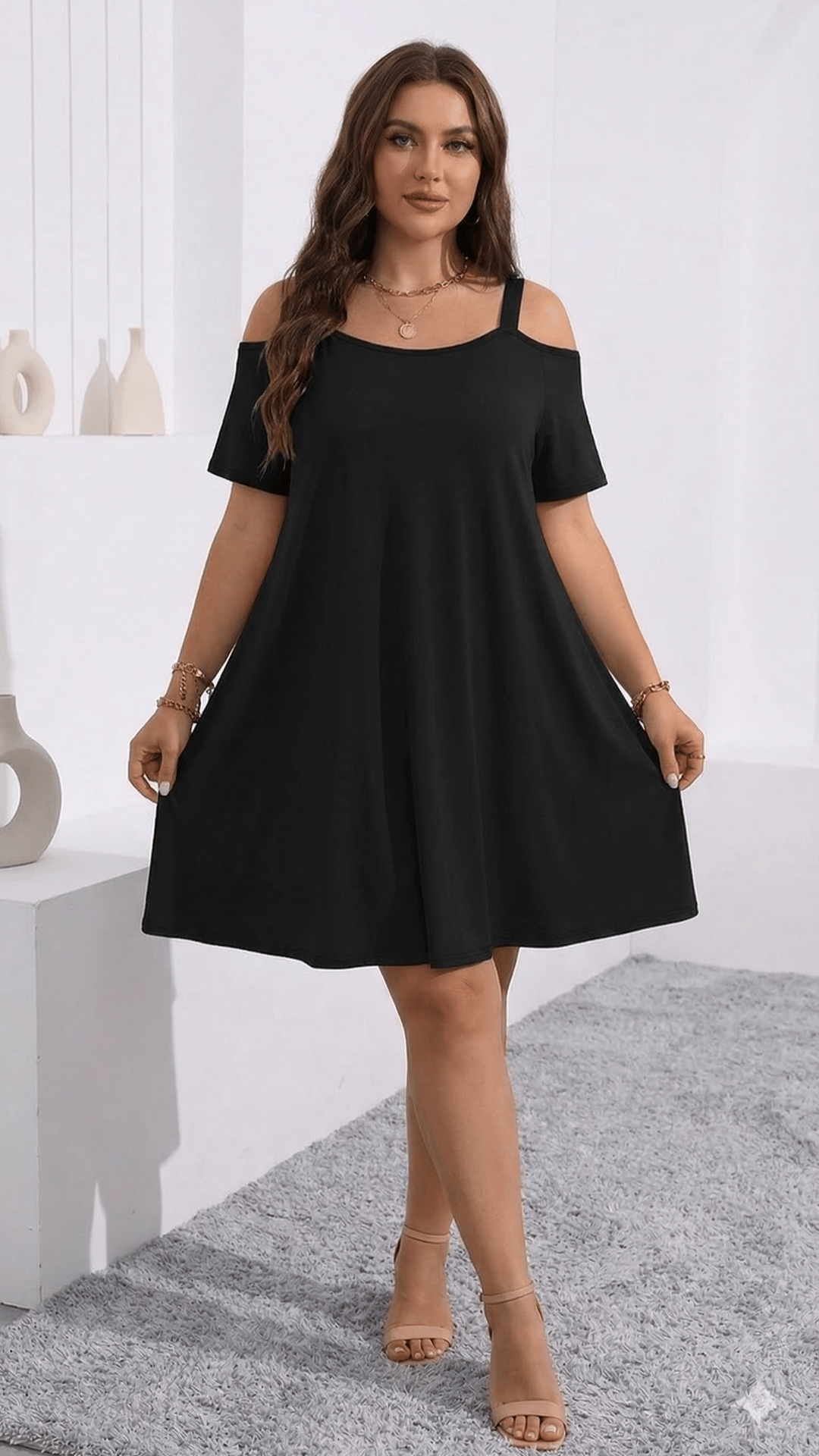Discover this curve-enhancing midi dress — designed with strategic shoulder cut-outs and a body-contouring fit, created especially for sizes L to 5XL. This isn’t just a dress, it’s made to celebrate your shape with confidence and style.