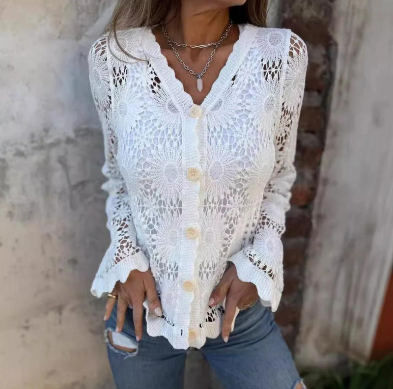 🌸Women's Lacy V-Neck Long Sleeved Top