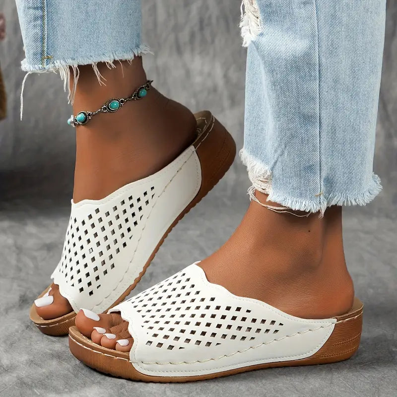Peep Toe Wedge Slides: Hollow Design, Soft Sole