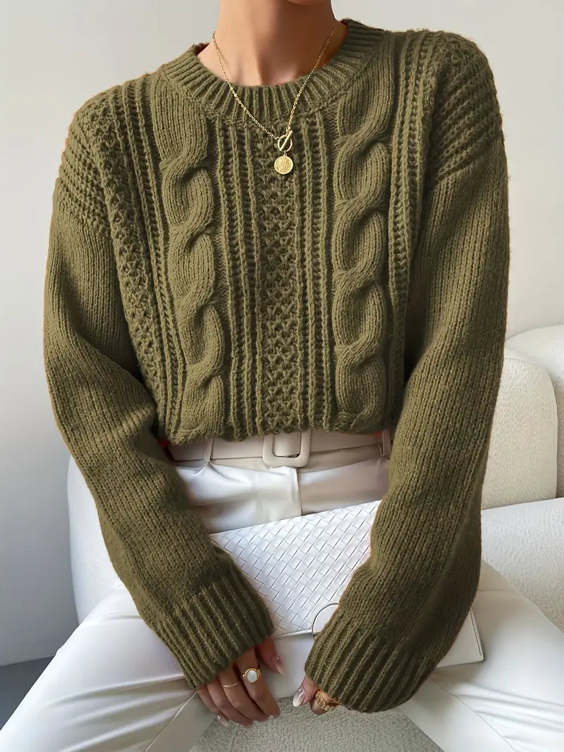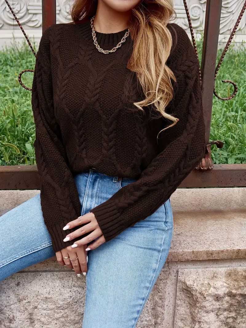 Cable Knit Crew Neck Sweater - Women's Long Sleeve Fall/Winter Top