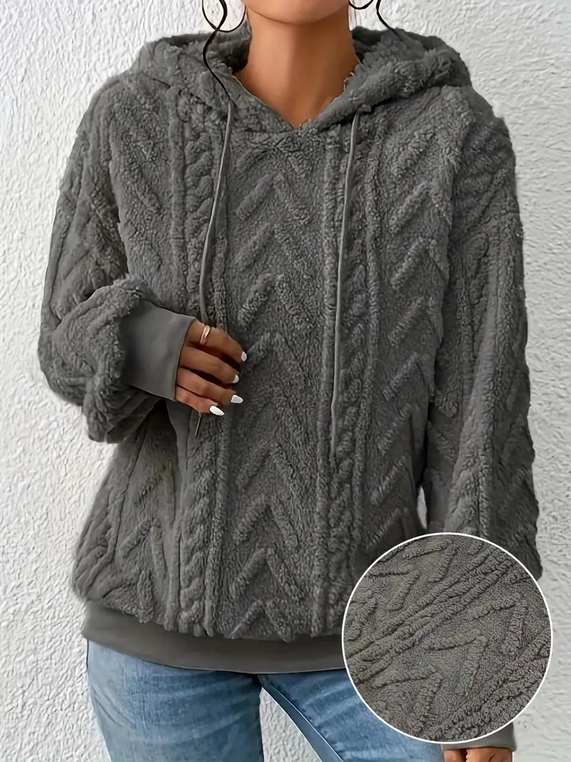 Women's Drawstring Teddy Hoodie – Casual Long Sleeve Sweatshirt