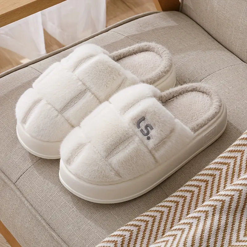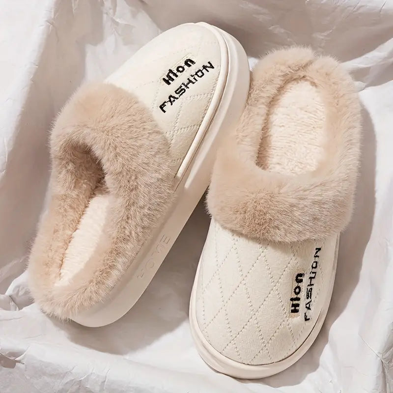 Elegant Women's Fleece Slippers - Cozy Slip-On Winter House Shoes
