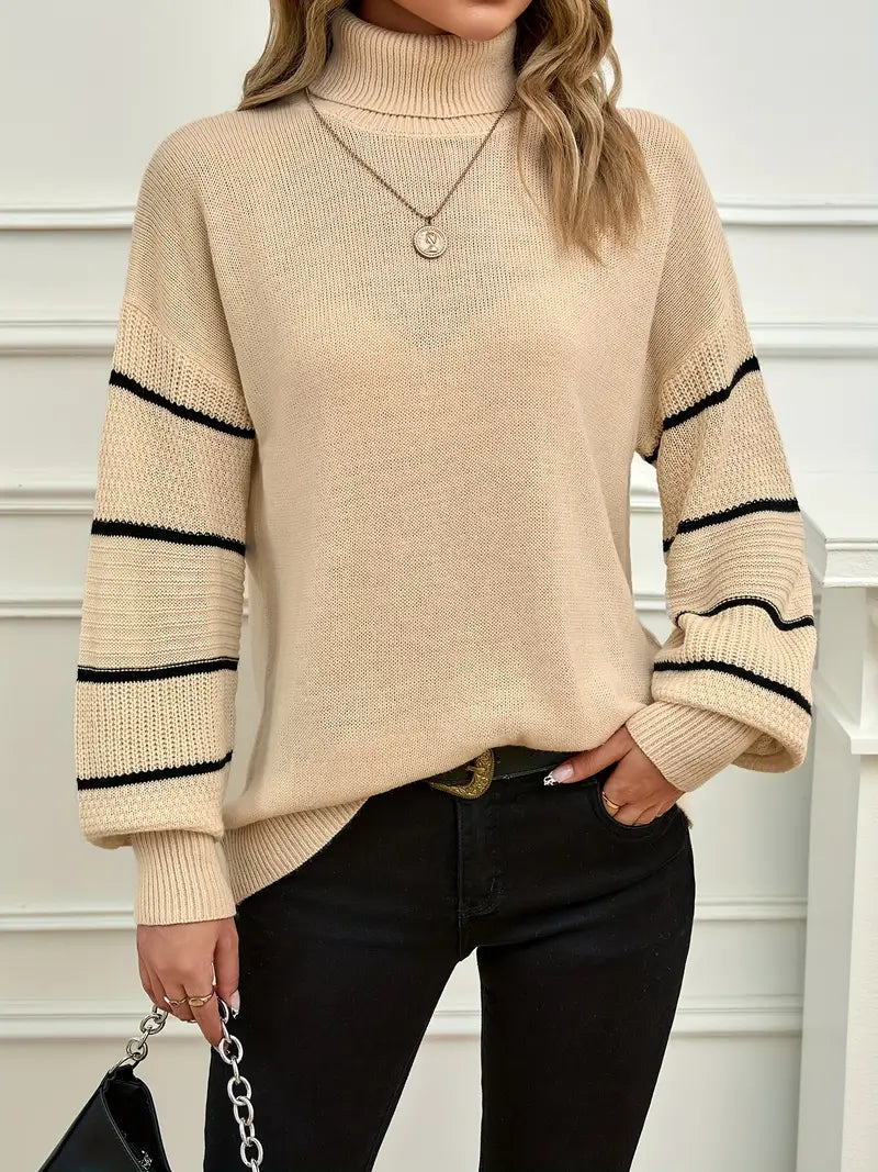 Women's Stripe Turtleneck Sweater – Casual Long Sleeve for Fall & Winter